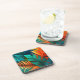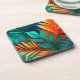 Hard plastic coaster is shown in a lovely multi colour tropical palms print.