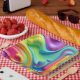 Plastic Rainbow Fluid Shapes Paper Plate