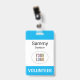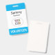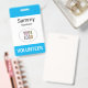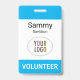 Personalise our professional plastic volunteer name badge with your event or organisation logo, volunteer name, or other custom text. It's PVC plastic and available with a metal clip, lanyard, or a retractable reel. This sky blue name badge can be customised to a different colour, and you can optionally add content to the back. No minimum order quantity and no setup fee.