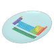 Plate featuring periodic table of the elements, with each element group marked in rainbow colours.