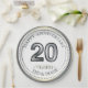 Platinum 20th wedding anniversary or birthday paper plates, change the curved type on the top and bottom to your occasion or event, easy customisation when you order.
