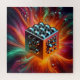 Unleash the mystery of the cosmos with this captivating AI artwork featuring a platinum cube bathed in its own ethereal glow. The cube's base is adorned with a cluster of iridescent spheres, adding a touch of intrigue. The background explodes with vibrant energy, swirling patterns of neon orange and neon green creating a truly cosmic scene.