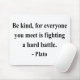 "Be kind, for everyone you meet is fighting a hard battle." - Plato