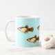 A number of small platies parade across this mug. Platies are a great livebearing fish, common in many beginner aquariums.