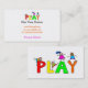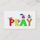 Cute cartoon illustration of little boys and girls climbing over giant letters of the alphabet that spell out the word PLAY. Image available on various gifts and products. Personalised business cards.