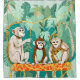 Play Date, Monkeys Jungle Playing Animals, Mischievous Wildlife Forest Tropical Nature, Funny Cute Snake Adventure, Bohemian Quirky Illustration Painting by 83 Oranges Uma Gokhale.