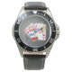 My husband loves the watch, he likes the dial, the graphics, the band, and it keeps perfect time.