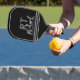 A stylish and modern black and white design on a cool pickleball-paddle... to personalise with your own name and initials.