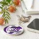 This volleyball themed metal keychain features the realistic image a purple, grey and white volleyball, upon which you can customise the player's name & jersey number in a varsity letter style font - by katz_d_zynes