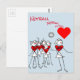 Netball player positions cartoon stick figures clipart and heart design postcard featuring WD. Love Netball card design for players and fans.