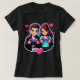 A romantic gaming couple holding controllers, surrounded by pixel hearts and neon lights. This design blends love and gaming culture, perfect for Valentine’s Day T-shirts and stickers made for true gamer couples.