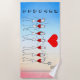 Pretty Netball stick figures and heart shape design beach towel. Netball themed gift idea for players and fans.
