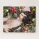 Playful Black and White Cat in Christmas Tree Jigsaw Puzzle