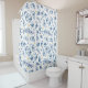 An elegant maritime pattern with playing blue dolphins and ocean waves. In between there are individual golden drops. Brings the ocean to your bathroom.