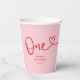 Playful Calligraphy Pink Red 1st Birthday Paper Cups