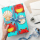 Colourful and animated pattern featuring cheerful cartoon crabs and seashells, set against a bright and lively blue background. Perfect for summer-themed designs or children’s decorative projects.