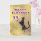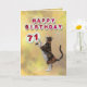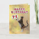 A cute cat on his hind legs playing with a birthday message spellt out in balloons. A great card for a cat-lover.
