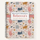 Inspire your young artist with our personalised playful cat-themed sketchbook for kids! This “Meow-tastic Adventures” drawing notebook features a whimsical pattern of pink, grey, and brown playful cats alongside doodles of paw prints, fish bones, flowers, dots, and hearts on both the front and back covers.