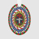 Each layer of this concentric oval design brings to mind the childhood joys of Christmas, from coloured lights, to snow, to gingerbread men and candy canes, with a wreath surrounding a snowy window in the centre, reminiscent of looking for Santa Claus on Christmas Eve.