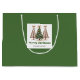 Minimalist watercolor christmas tree gift bag with playful leopard pattern in earthy green and gold. Personalise with your custom name for a stylish Christmas gift presentation.