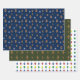Each layer of this concentric oval design brings to mind the childhood joys of Christmas, from coloured lights, to snow, to gingerbread men and candy canes, with a wreath surrounding a snowy window in the centre, reminiscent of looking for Santa Claus on Christmas Eve. One sheet in this set features the mandala, a gingerbread man, and a snowflake scattered across a deep blue background. The second sheet features a pattern of gingerbread men scattered across a pine green background, and the third sheet features a pattern of colourful Christmas lights weaving across a white background. These three options give you a variety of choices for your wrapping and DIY projects.