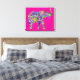 Playful Colorful Elephant Art on Fuchsia Canvas