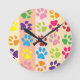 Playful Colorful Paw Prints Modern Round Wall Cloc Clock