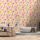 Cute lovely yellow purple fuchsia and white flowers on beautiful pink background. This wallpaper makes every girls room cosy and warm.