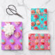 Playful Colourful Lilac, Blue, and Pink Cupcake Wrapping Paper Sheet