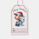 A whimsical holiday tag showcases a cute cow in a Santa hat, sitting on a toilet. It adds a humourous twist to Christmas gifting with its cheerful message.