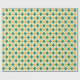 A diamond pattern with alternating green, yellow, and cream shapes accented by small red strawberry icons.