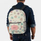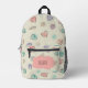 This adorable personalised backpack features doodles of simple hearts, dots, and wavy lines painted with soft pastel watercolors in blush pink, mint green, lavender, and pale yellow.