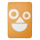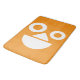 face built up by a half circle, 2 different size circles with hole in the middle for eyes and a triangle for the nose. Available in several colours. Fun for kids bathroom.