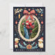 Celebrate the holiday season with this charming and whimsical Christmas card featuring festive illustrations and a customisable photo frame on the front. The card's dark background is adorned with playful holiday elements, including Santa hat wearing sheep, snowflakes, foliage, and a decorative red bow. The photo placeholder lets you add your own favourite picture, creating a personal touch for your holiday greetings. The back offers space for personalised text, making it easy to share a heartfelt message with loved ones. Perfect for spreading holiday cheer in a unique and memorable way!