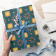 Playful geometry pattern on blue background wrapping paper