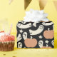 Cream ghosts, pumpkins, and stars on black in a cheerful, non-scary Halloween layout. Great for children’s decor.