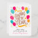 Celebrate the season with a fun New Year holiday card featuring colourful balloons in cheerful shades of yellow, fuchsia pink, and turquoise blue. Designed with playful, artistic hand-lettered real gold foil typography that reads “Happy New Year”, this card captures joy and excitement. The message is fully customisable, allowing you to add your own personal touch in a modern handwritten script in black and fuchsia. Perfect for kids and those young at heart, this vibrant card spreads happiness, positivity, and festive spirit. Whether sending to family, friends, or colleagues, it’s a delightful way to welcome the year ahead with colour, creativity, and a joyful celebration.
