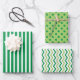 Playful Green Lines, Zigzags & Shamrocks set of 3 Wrapping Paper Sheet