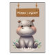 Make a splash with this fun hippo-themed table sign! Featuring an adorable baby hippopotamus, a weathered wooden sign, and lush tropical greenery, this design adds a lively and adventurous touch to any setting.