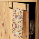 Playful kitchen-themed pattern featuring aprons tea towel