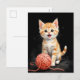 Playful Kitten Cat with Yarn Watercolor Print Holiday Postcard
