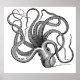 A detailed black and white drawing of a friendly looking octopus from the early 1800's.