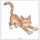 Bright orange kitten cartoon in a playful stretch pose with large green eyes. Ideal for kids, education, and cheerful branding; perfect as a sticker, print, or digital asset.