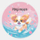 Playful Papillon Pup: Splash of Pink and Blue Classic Round Sticker