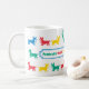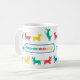 A playful design featuring corgis prancing happily around the mug in vivid primary colours—red, blue, yellow, and green—this design is sure to bring joy to your coffee breaks or tea time. Perfect for dog lovers, especially fans of the charming Pembroke Welsh Corgi breed, it makes a thoughtful gift for birthdays, holidays, or any special occasion. Start your mornings with a smile and a splash of colour with your favourite four-legged friends!