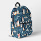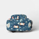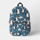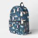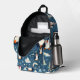 The image is a pattern of cute cartoon penguins on a blue background with snowflakes. The penguins are depicted in various poses: standing, waving, wearing hats and scarves, and interacting with winter elements like snowdrifts, Christmas trees, and igloos. The overall aesthetic is cheerful, festive, and child-friendly.