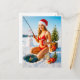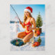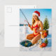 Playful Pin-Up Girl Fishing in Red Bikini Holiday Postcard