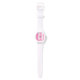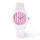A playful design featuring bright pink and white stripes with a fun patterned border along the bottom.