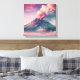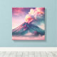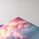 A whimsical depiction of a volcano erupting with soft pink smoke against a backdrop of fluffy white clouds. This unique artwork is sure to add a touch of whimsy and wonder to any room.