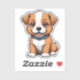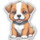This adorable sitting cartoon puppy with its tongue sticking out in a playful expression. The happy pup has a big smile and is wearing a blue collar.